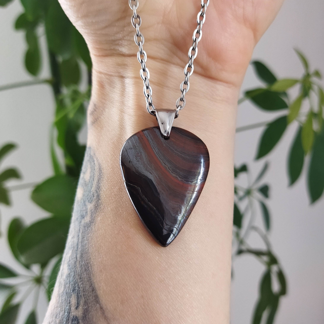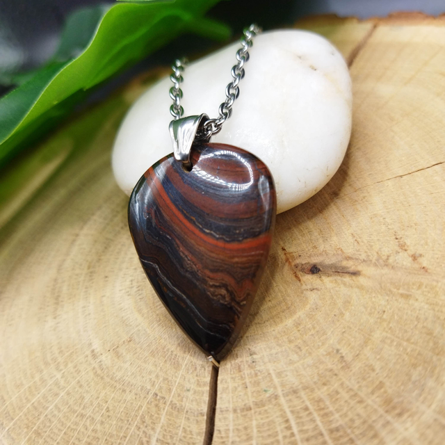 Pendentif en Œil de Fer et bélière acier inoxydable pour homme ou femme. Dimensions : 4.2cm x 2.8cm (bélière incluse).